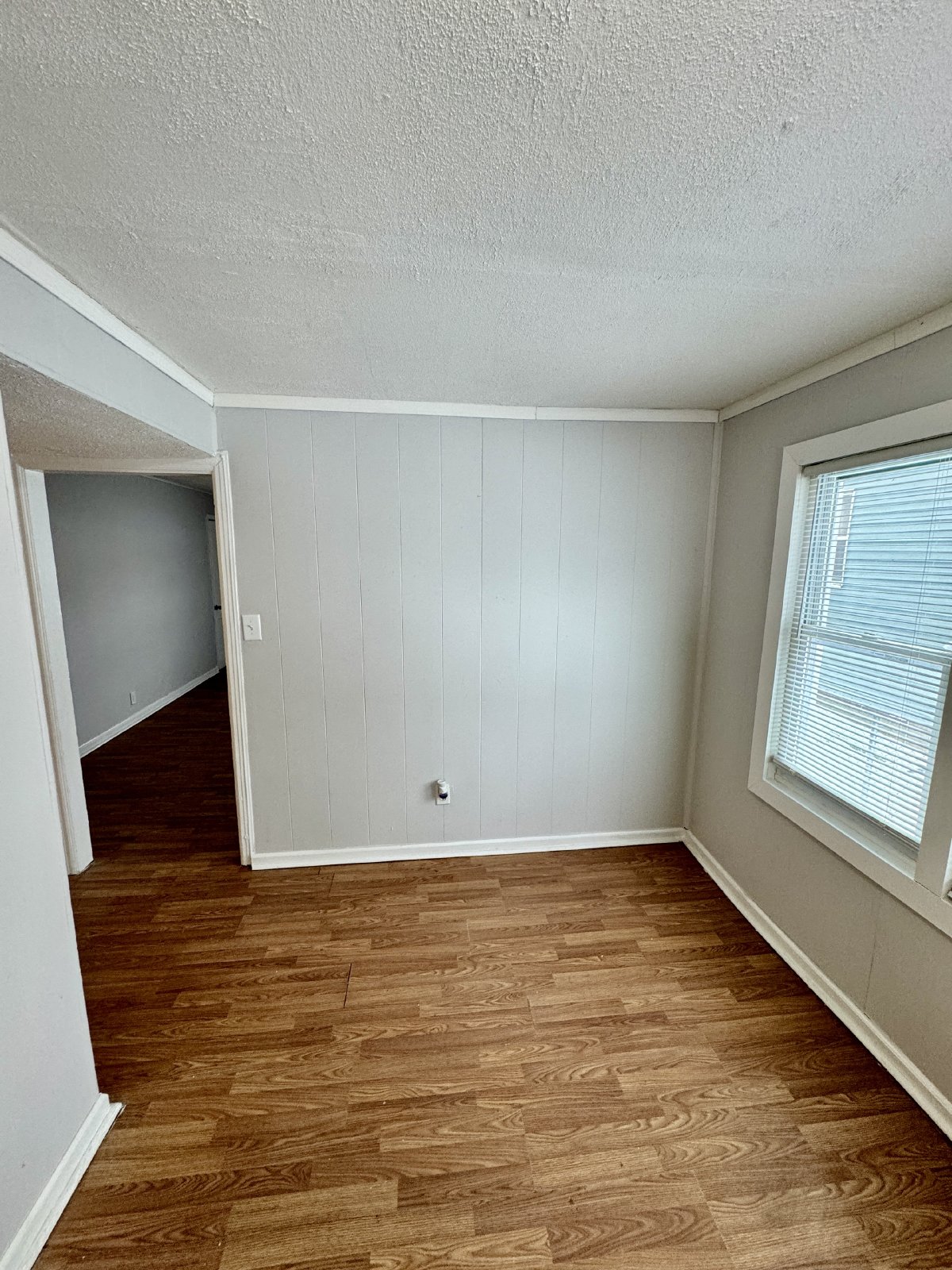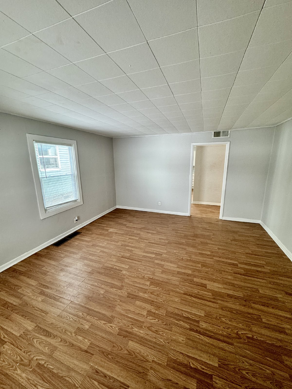 You have to come and see this adorable 2 bedroom and 1 bathroom ranch style home. As you enter the home you are greeted with lovely hardwood style flooring and a really pretty paint throughout the home. The bedrooms are both a good size. The kitchen comes stocked with a stove and fridge and has a separate eat-in area. Washer and dryer hook-ups and window AC units. Additional perks include blinds provided throughout the home, large yard and covered back porch.