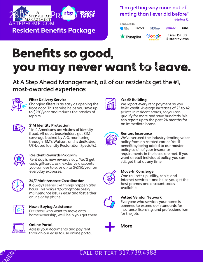 A STEP AHEAD MANAGEMENT CAN BE REACHED AT 317-912-1507 via email at INFO@ASTEPHOME.COM OR ONLINE AT ASTEPHOME.COM