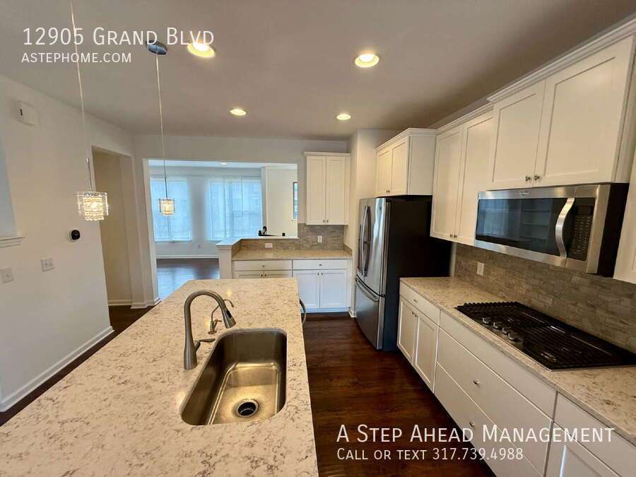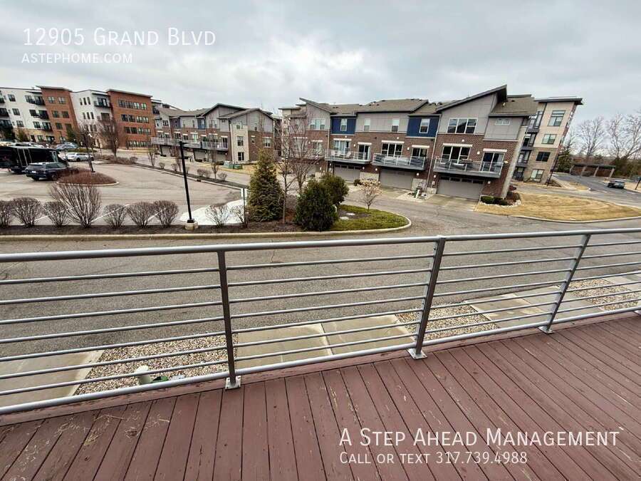 Welcome home to this beautifully maintained 2-bedroom, 3.5-bath tri-level townhome located in the highly desirable Grand & Main neighborhood in Carmel. This spacious home offers a versatile layout with multiple living areas, including a bright main living room and a cozy hearth room with a gas fireplace. The lower-level family room with a full bathroom provides the perfect space for guests, a home office, or a media room. The stunning kitchen features quartz countertops, a large center island, a built-in pantry, and stainless steel appliances, with a dining area and private balcony just off the kitchen—ideal for relaxing or entertaining. Upstairs, you’ll find a loft area for additional living space, along with both bedrooms. The primary suite includes a double vanity sink and a spacious walk-in closet. Washer and dryer hook-ups are conveniently located on the upper level. Additional highlights include a half bath on the main level, window coverings, stylish light fixtures, neutral finishes throughout, and a two-car attached garage. This home offers the perfect blend of comfort, style, and convenience in one of Carmel’s most sought-after communities.