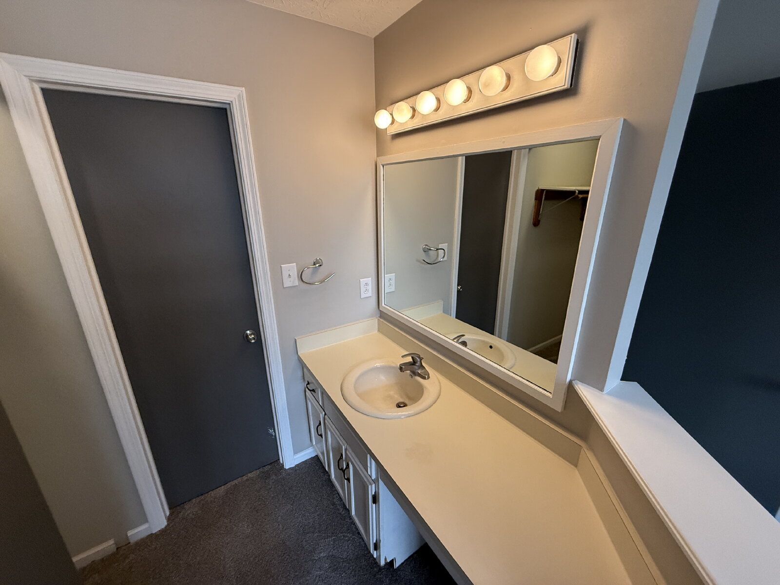 Upstairs, you’ll find generously sized bedrooms with plush carpeting and great closet space. The primary suite provides a comfortable retreat, while the additional bedrooms offer flexibility for family, guests, or a home office. The primary bathroom features a spacious vanity with plenty of counter space, ample storage, and a large mirror, creating a practical and comfortable setup for daily routines. Additional bathrooms offer a full tub and shower combination.